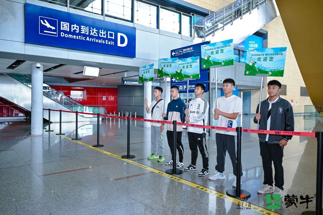 “希望工程·蒙牛少年足球夏令营”昆明营共有来自全国16个省、市、自治区的164名中小学球员参加, 7月11日上午志愿者们便前往长水机场、昆明火车站、昆明南站接待陆续到达的小球员们。
